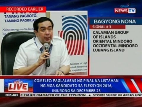 #NewsPolitics - #2016, #Comelec, #December, #Eleksyon, #Iniurong, #Kandidato, #Listahan, #Paglalabas, #Pinal