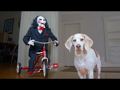 Dogs vs Jigsaw Prank: Funny Dogs Befriend Billy the Puppet From Saw Movie